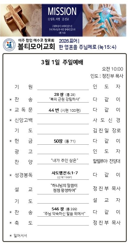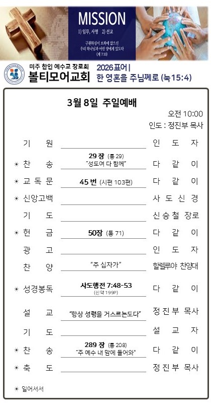 ▶03/25 | 선교위원회 헌신예배